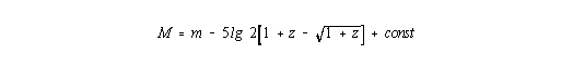 scheinbare Helligkeit m = 10,56 und die Rotverschiebung cz = 785,3 km s-1, die lg cz = 2,9 entspricht. Da nun in