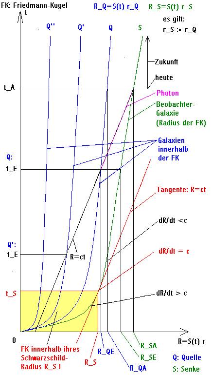 auf der Oberfläche einer Friedmann-Kugel (FK) mit dem Radius R(t) = S(t)r, die